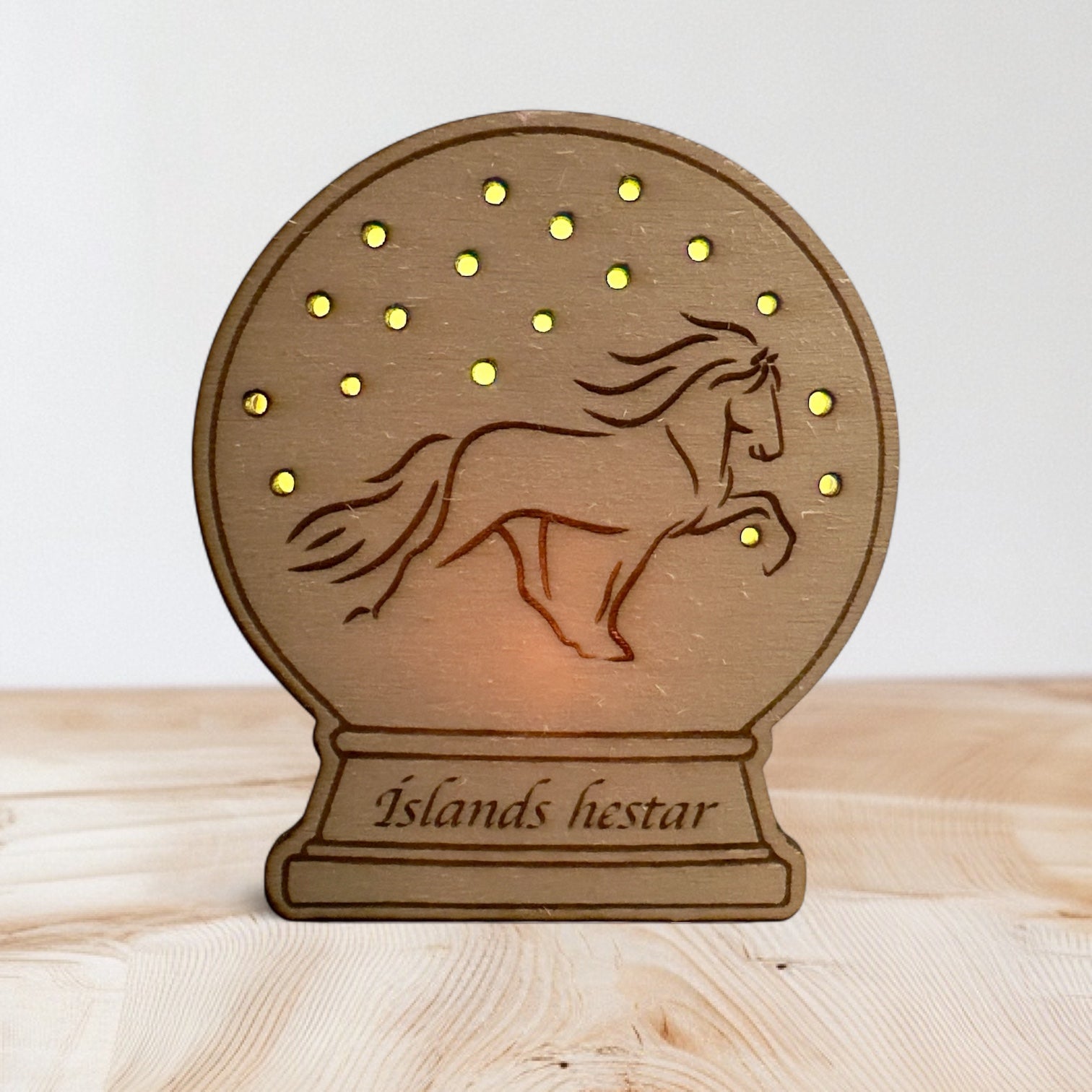 A unique snow globe - not made of glass, but of wood.